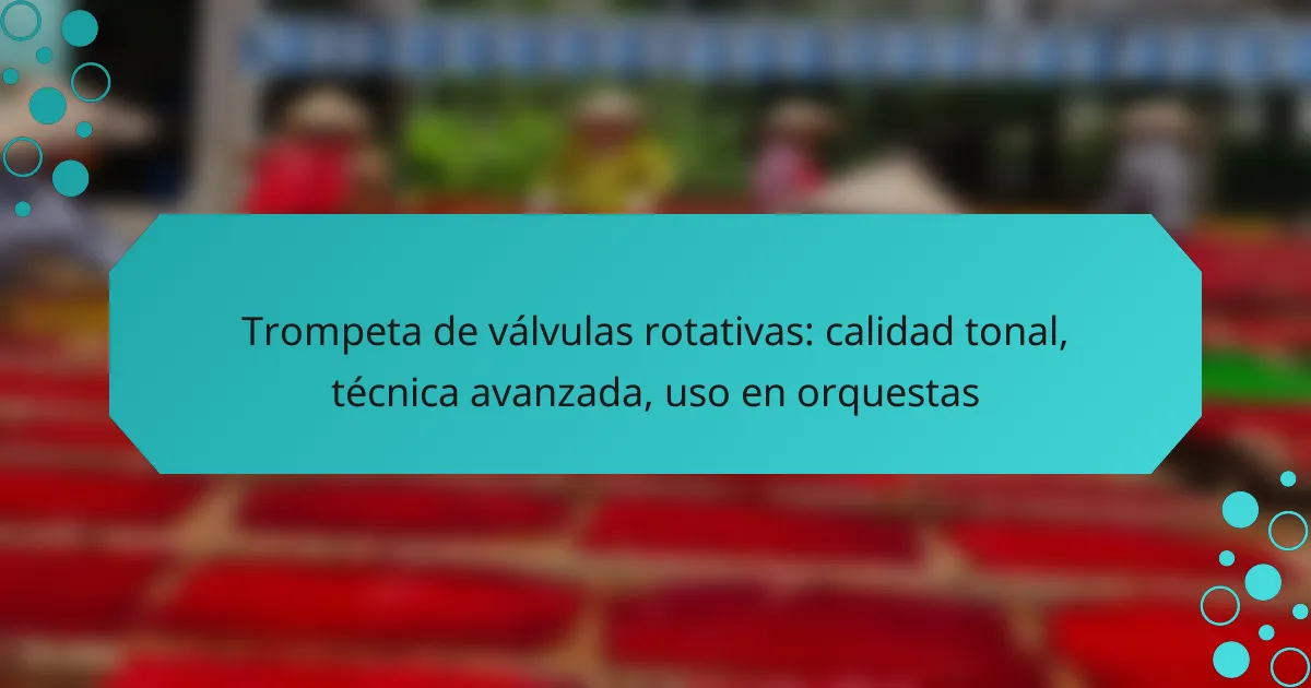 La trompeta de válvulas rotativas es un instrumento destacado por su sonido cálido y rico, lo que la convierte en una elección popular en orquestas y diversas agrupaciones musicales. Su calidad tonal superior permite una versatilidad en la interpretación de diferentes estilos, mientras que dominar su técnica avanzada requiere dedicación y práctica en aspectos como la digitación y el control de la embocadura.