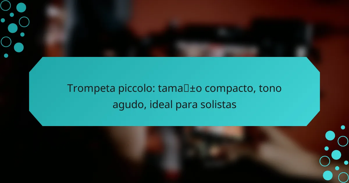 La trompeta piccolo es una variante más pequeña de la trompeta tradicional, afinada generalmente en si bemol o do. Su construcción permite que emita un sonido más agudo y penetrante, lo que la diferencia de otros instrumentos de la misma familia.